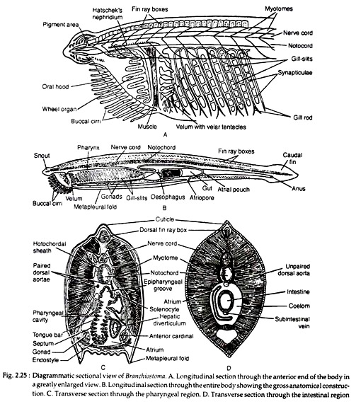 Branchiostoma is a microphagus animal which obtains the food by filtering the stream of water that enters the pharyngeal cavity. The food or ‘sea-soup’ consists of protozoans, algae, diatoms and other organic particles suspended in sea-water. The wheel organ produces a vortex of water current which is drawn in towards the mouth.