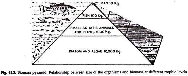 2. Trophic structure arid the trophic function may be shown graphically by means of ecological pyramids (Fig. 48.3), in which the first or the producer level forms the base, and the successive levels or the tiers make up the apex.