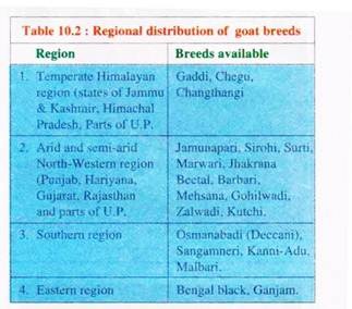 In India, each goat breed is considered as a population living in a given locality with a local name and having characters distinct from other such population. At present, in India four agro-climatic regions are known to have the following goat breeds (Table 10.2).
