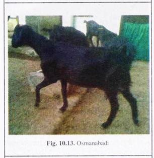 This medium size goat breed is predominantly jet black in colour. Body weight of male is 33 kg and that of female is 25 kg on an average. Both sexes have short pointed horns, directed upward and backward. Ears are small and flat. Males have thick beard.
