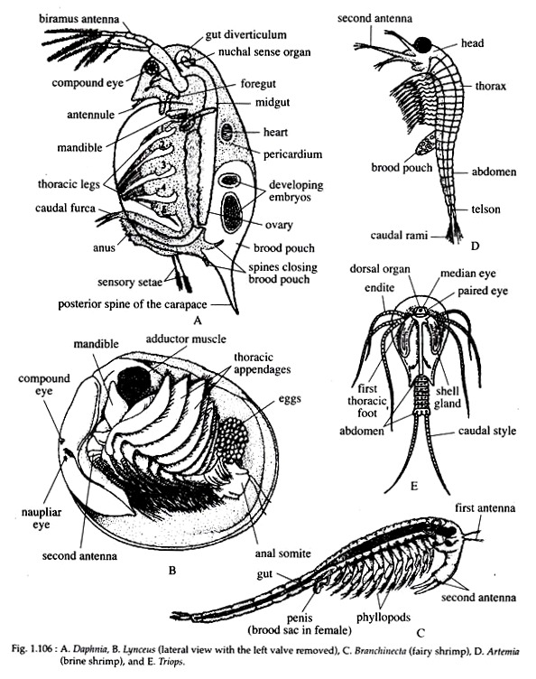 8. Dioecious. Copulation and egg brooding are very common. Development through different larval stages like nauplius, zoea etc.