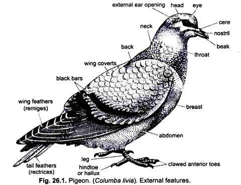 In this article we will discuss about the external features of pigeon with the help of suitable diagrams.