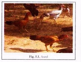 The literal meaning of Aseel is real or pure. Aseel is well-known for its pugnacity, high stamina, majestic gait and dogged fighting qualities. The name Aseel appears to have been given to this indigenous breed because of its inherent qualities of fighting. Andhra Pradesh is said to be the home of this important breed.