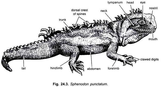 In this article we will discuss about the anatomy of sphenodon with the help of a suitable diagram.