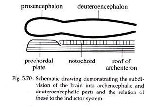 The regionally specific induction mechanisms influence the formation of the neural tube. Thus, the pros encephalon is induced by prechordal plate mesoderm and the deuteroencephalon by the anterior portion of the notochordal mesoderm, both lying beneath the primordial brain.